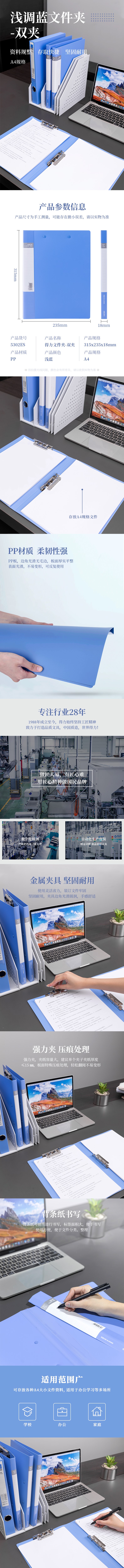 得力5302ES 双强力夹 (蓝)