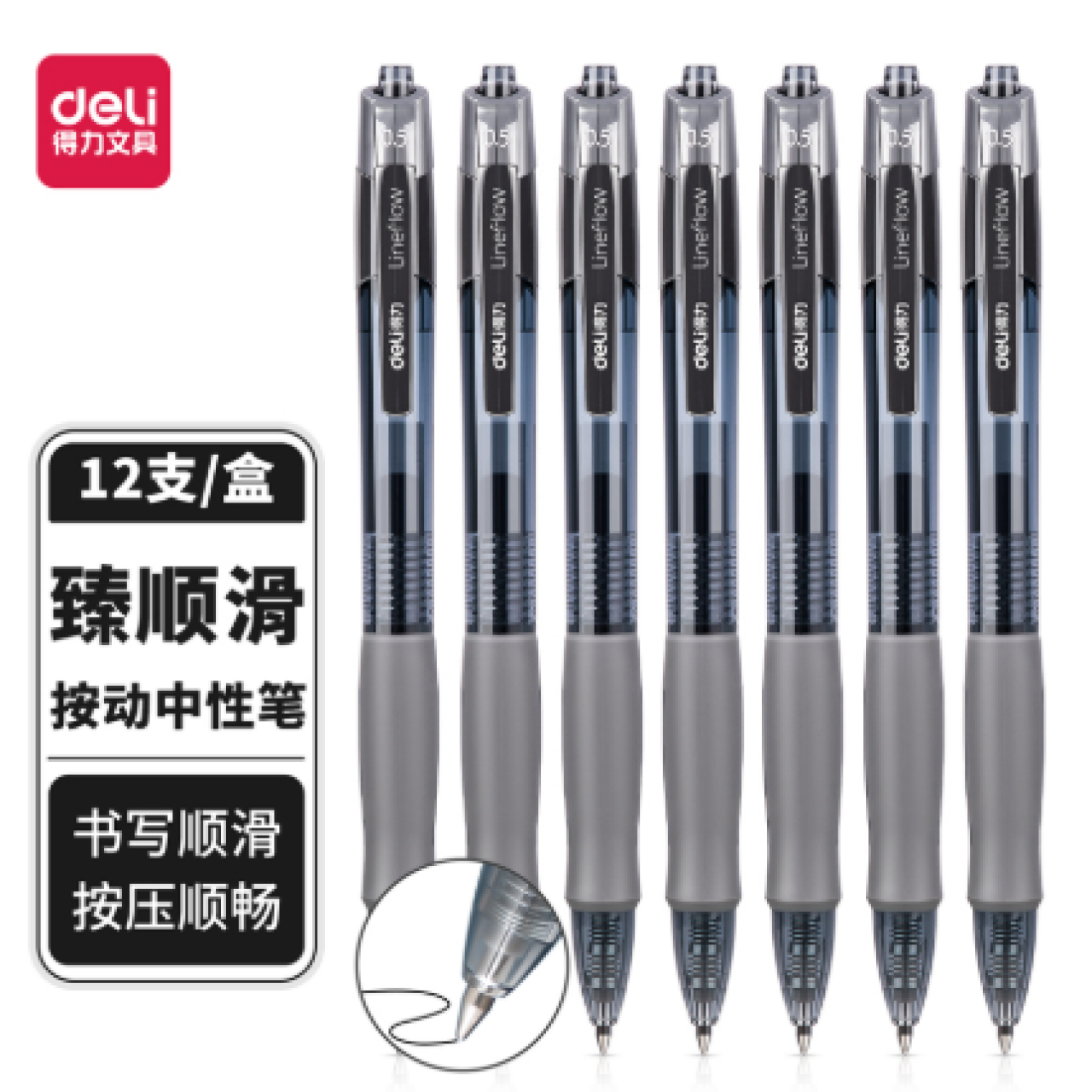 得力S08臻顺滑办公中性笔 0.5mm弹簧头(黑色)(支)(12支/盒)